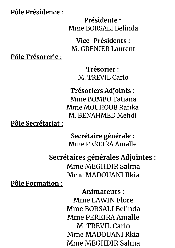 Par la complémentarité de la présidence, du secrétariat et de la trésorerie, il assure à la fois la représentation des familles, la clarté dans le fonctionnement interne et la transparence financière indispensable à la confiance des adhérents et des partenaires.